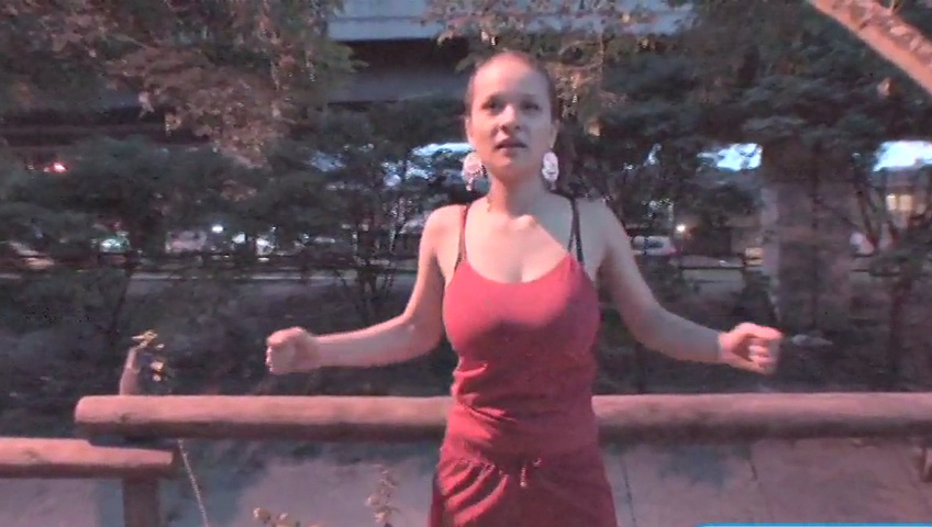 Busty teen jiggles her big tits in public while exercising doing jumping jacks