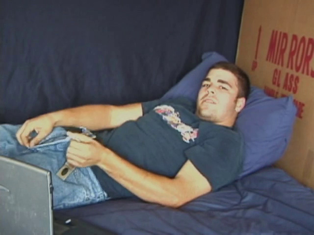 Young amateur Tony Hammer takes his dick out and starts jacking off. He pulls down his pants and kicks back, while continuing to work his cock. Tony breathes heavy and beats off hard, until he sprays a nice warm cum load all over his chest.