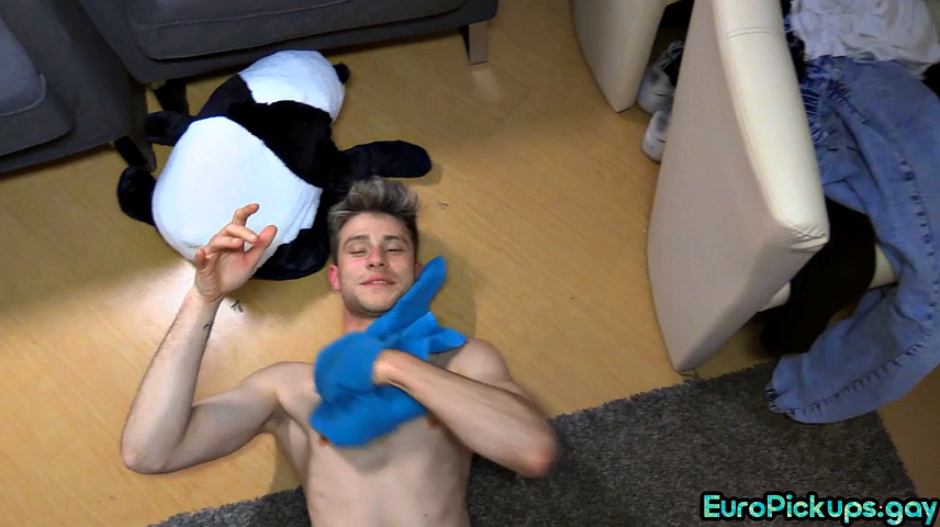 Skinny cute stud wanking stranger's dick